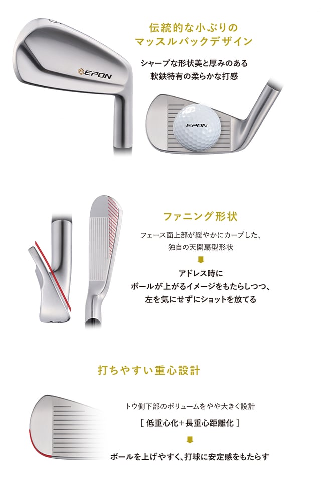 ●伝統的な小ぶりのマッスルバックデザインが厚みのある柔らかな打感をもたらす。