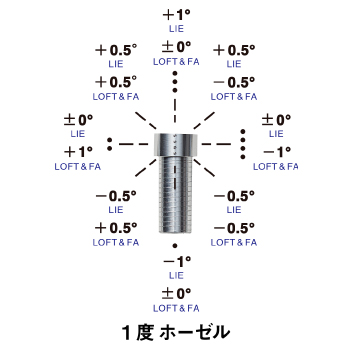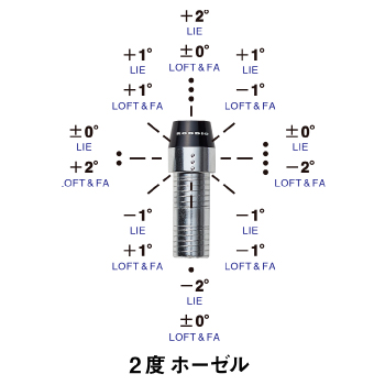 3種のホーゼルにより、0~2度までのロフト角、ライ角、フェース角のチューニングが可能となります