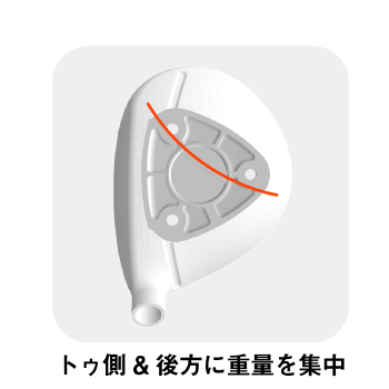 パワーヒッター系に多い、フックを極力嫌うゴルファーに対応したソールです。トゥ側後方にウエイトを集中することでヘッドの返りを抑えた設計となっています。