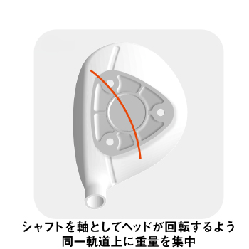 使用者のスイング軌道に素直に呼応する高い直進性が得られるソールです。スイング中のヘッドの回転軌道上にウエイトバーを装着することで、適度なつかまり感と気持ち良い振り抜き感が同時に得られる、今シリーズの中では最もクセの少ないスタンダードな設計です。