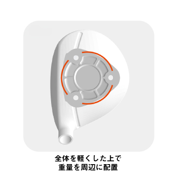 前作同様にオートマチックにボールがつかまるソールです。ソール形状はフェースアングルがやや左へ向くように設計し、つかまりの良いヘッド性能のポテンシャルを十二分に引き出せるようウエイトをソール周辺にバランスよく配分しました。さらにヘッドスピードが平均以下のゴルファーにも対応できるよう重量はやや軽めに設計しています。