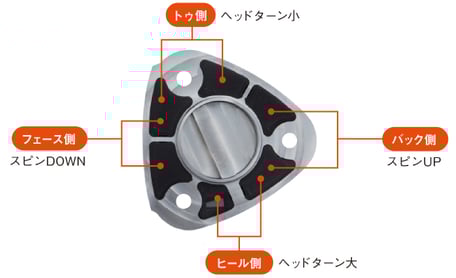 ソール内部のポケットに、専用調整キットを装着することで、重量、重心、スピン量のチューニングが可能となります。