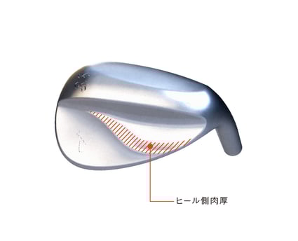 ②MCシリーズのウェッジでは、使い手のニーズに合わせて最適なヘッド挙動を提供する独自のリプルシェイプ(波紋形状)を採用しており、F-Designでは、バックフェースのヒール側に重量のボリュームを持たせることで、操作性が高まるヒールヒットしやすい設計が施されています。