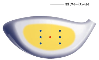 最大反発スポットがスイートスポット周辺の上下左右に点在。