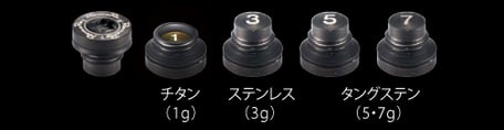 ソール中央部に取り付けるフィッティングウェイト。個々のスイングスタイルに合わせて重心位置を調整するクラフトパーツ。ボールのつかまり、打ち出し角のほかに、強いインパクトを後押しする役割をもつ。