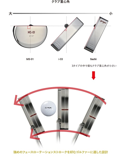 - 強めのフェースローテーションストロークを好むゴルファーに適した設計