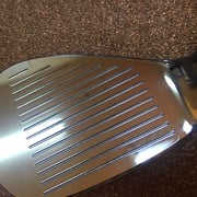 惑星探査機はやぶさの部品などを手掛けるTDC社にて1μ以下の精度で超精密平面加工をフェースに施しています。金属そのものを1μ以下の精度まで平滑化すると、磨きなども前にフェース面が完全に鏡以上に平らになり、そして鏡のように歪の無い鏡面になります。そのガラス状の面とウレタンカバーのボールの摩擦係数の相性を最大限利用し、物理的に最大限サイドスピンを減少しバックスピンを増やし、ボールを潰し強い弾道を得られるように開発しました。